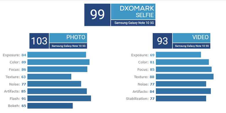 Tak hanya kamera belakang, kamera selfie Galaxy Note 10+ 5G juga dinobatkan sebagai yang terbaik oleh DxOMark, menggeser posisi ASUS ZenFone 6 yang meraih posisi tertinggi sebelumnya.