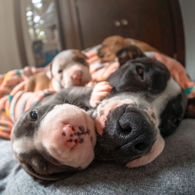 After their ordeal in the wilderness, the newborn puppies were finally safe and warm. For the first few weeks of their lives, they didn’t want to do much else but sleep. During the puppies’ nap time, McCallum seized the opportunity to build a relationship with Ruby through gentle pets and games of fetch.